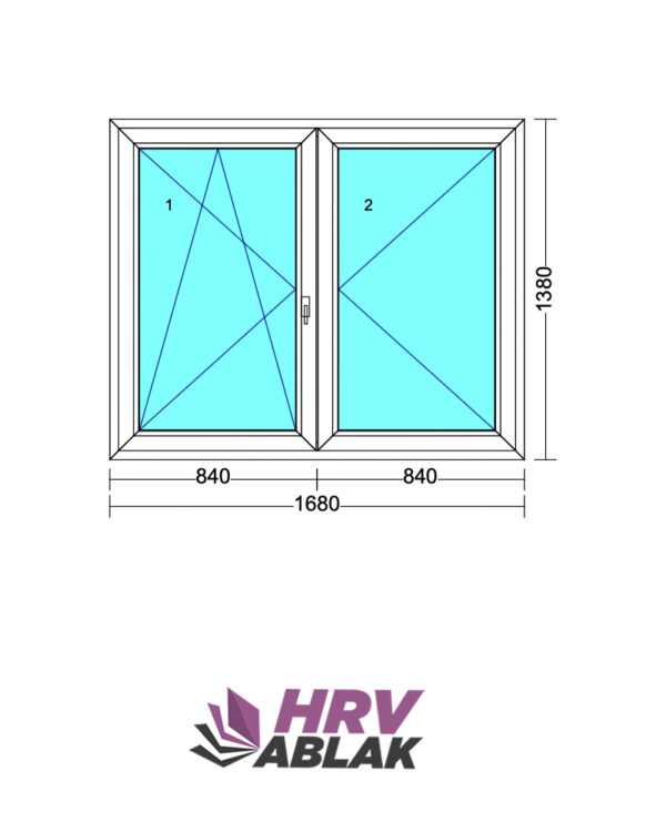 170×140 cm kétszárnyú, középen felnyíló bukó-nyíló ablak balos
